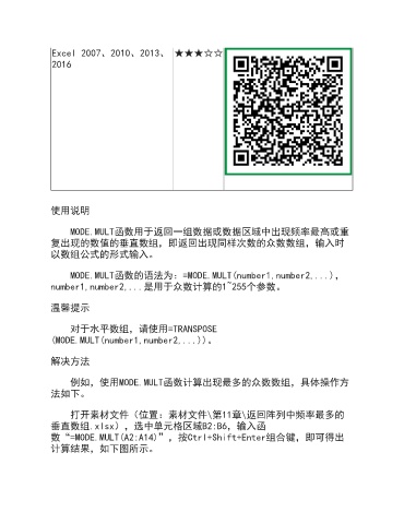 MODE.MULT函数的语法为:=MODE.MULT(number1,number2,...),