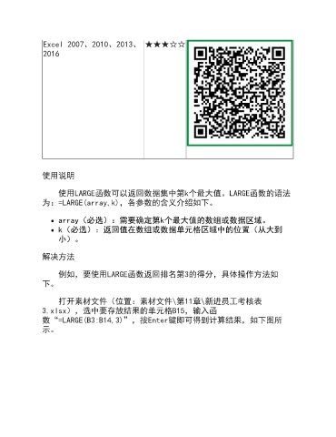 为:=LARGE(array,k),各参数的含义介绍如下。
