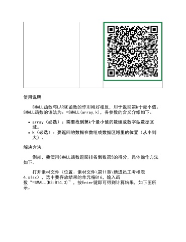 SMALL函数的语法为:=SMALL(array,k),各参数的含义介绍如下。
