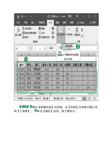 弹出【新建名称】对话框,在【名称】文本框中输入名 称【工资表】; 单击【确定】按钮,如下图所示。