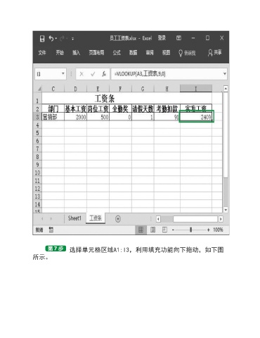 选择单元格区域A1:I3,利用填充功能向下拖动,如下图 所示。
