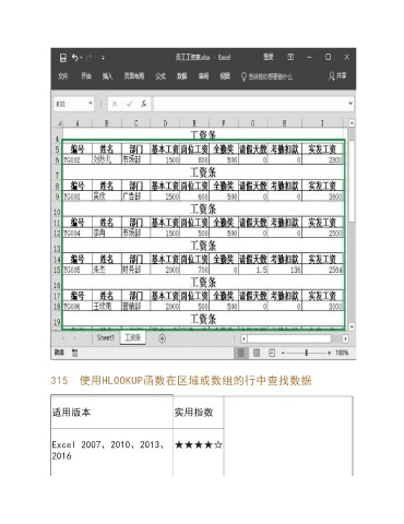 315 使用HLOOKUP函数在区域或数组的行中查找数据 适用版本 实用指数 Excel 2007、2010、2013、 ★★★★☆ 2016