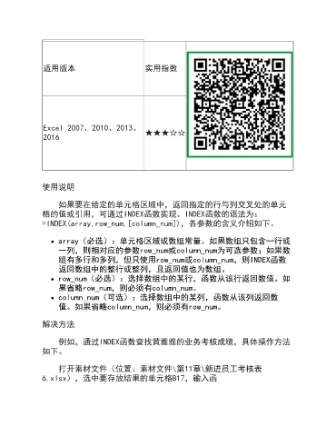格的值或引用,可通过INDEX函数实现。INDEX函数的语法为: