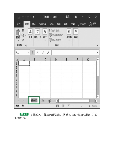 直接输入工作表的新名称,然后按Enter键确认即可,如 下图所示。