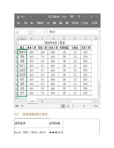 321 按笔画数进行排序 适用版本 实用指数 Excel 2007、2010、2013、 ★★★☆☆
