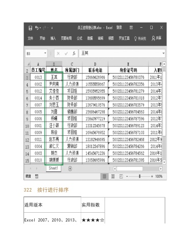 322 按行进行排序 适用版本 实用指数 Excel 2007、2010、2013、 ★★★★☆