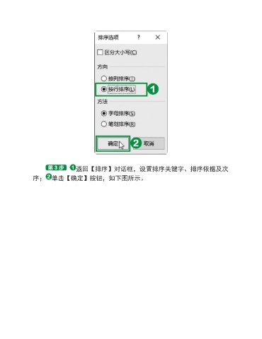 返回【排序】对话框,设置排序关键字、排序依据及次 序; 单击【确定】按钮,如下图所示。