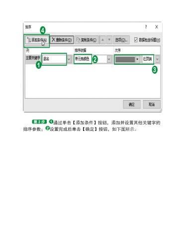 通过单击【添加条件】按钮,添加并设置其他关键字的 排序参数; 设置完成后单击【确定】按钮,如下图所示。