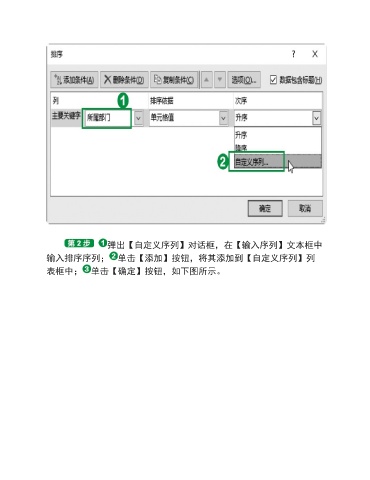 弹出【自定义序列】对话框,在【输入序列】文本框中 输入排序序列; 单击【添加】按钮,将其添加到【自定义序列】列 表框中; 单击【确定】按钮,如下图所示。