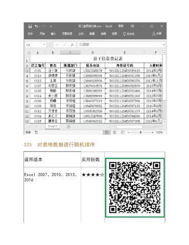 325 对表格数据进行随机排序 适用版本 实用指数 Excel 2007、2010、2013、 ★★★★☆ 2016