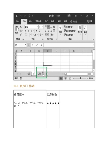 032 复制工作表 适用版本 实用指数 Excel 2007、2010、2013、 ★★★★★ 2016