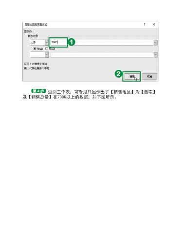 返回工作表,可看见只显示出了【销售地区】为【西南】 及【销售总量】在7000以上的数据,如下图所示。