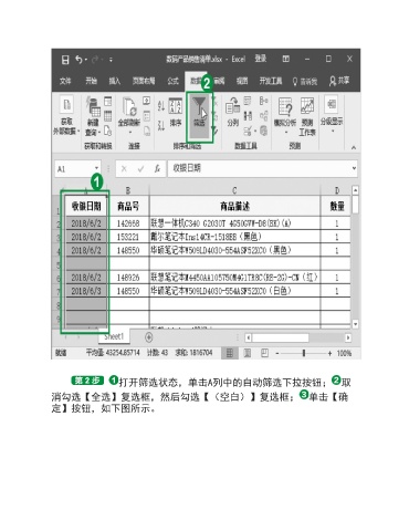 打开筛选状态,单击A列中的自动筛选下拉按钮; 取 消勾选【全选】复选框,然后勾选【(空白)】复选框; 单击【确 定】按钮,如下图所示。
