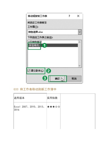 033 将工作表移动到新工作簿中 适用版本 实用指数 Excel 2007、2010、2013、 ★★★☆☆ 2016