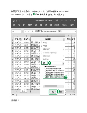 据需要设置筛选条件,本例中只勾选【联想一体机C340 G2030T 4G50GVW-D8(BK)(A)】; 单击【确定】按钮,如下图所示。 温馨提示