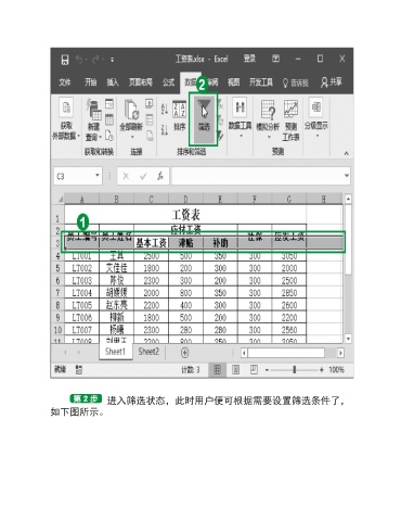 进入筛选状态,此时用户便可根据需要设置筛选条件了, 如下图所示。
