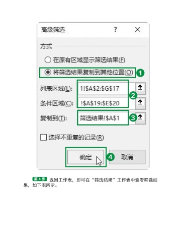 返回工作表,即可在“筛选结果”工作表中查看筛选结 果,如下图所示。