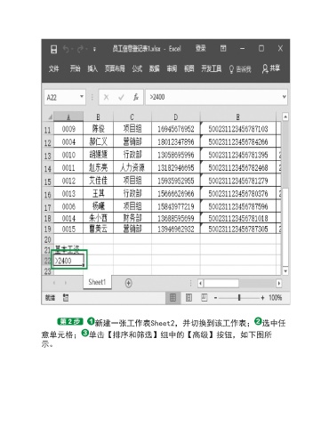 新建一张工作表Sheet2,并切换到该工作表; 选中任 意单元格; 单击【排序和筛选】组中的【高级】按钮,如下图所 示。
