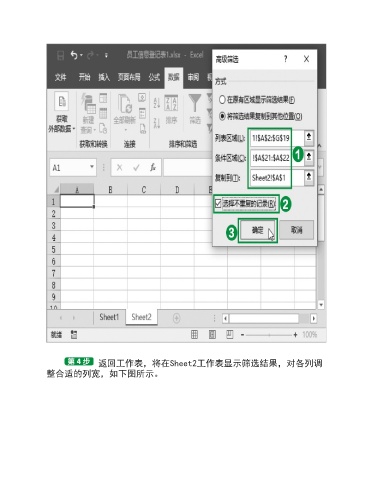 返回工作表,将在Sheet2工作表显示筛选结果,对各列调 整合适的列宽,如下图所示。