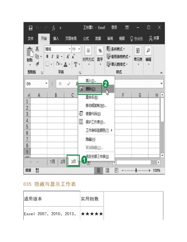 035 隐藏与显示工作表 适用版本 实用指数 Excel 2007、2010、2013、 ★★★★★