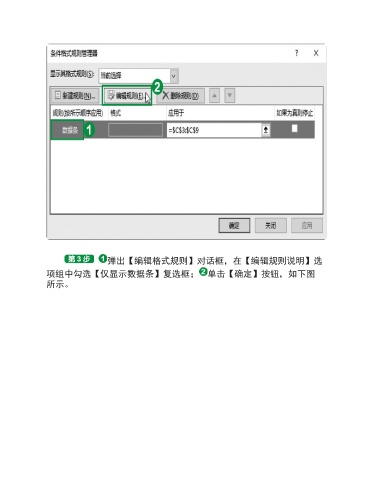 弹出【编辑格式规则】对话框,在【编辑规则说明】选 项组中勾选【仅显示数据条】复选框; 单击【确定】按钮,如下图 所示。