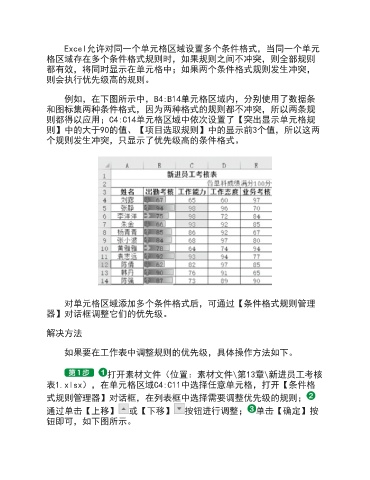 都有效,将同时显示在单元格中;如果两个条件格式规则发生冲突,