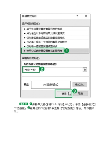 保持单元格区域B3:D16的选中状态;单击【条件格式】 下拉按钮; 在弹出的下拉列表中选择【管理规则】选项,如下图所 示。