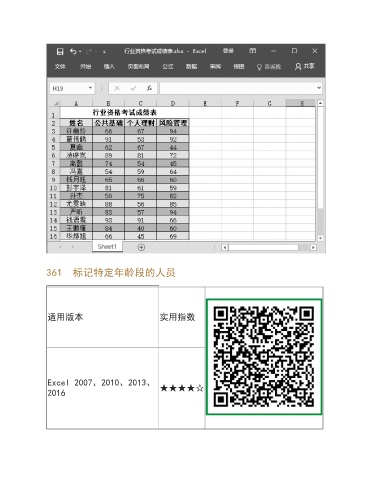 361 标记特定年龄段的人员 适用版本 实用指数 Excel 2007、2010、2013、 2016 ★★★★☆