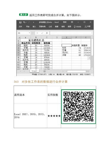 返回工作表即可完成合并计算,如下图所示。 363 对多张工作表的数据进行合并计算 适用版本 实用指数 Excel 2007、2010、2013、 2016 ★★★★★