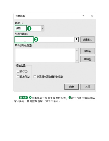 单击参与计算的工作表的标签; 在工作表中拖动鼠标 选择参与计算的数据区域,如下图所示。