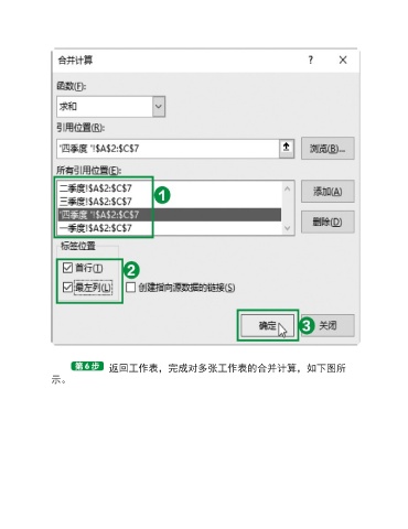 返回工作表,完成对多张工作表的合并计算,如下图所 示。