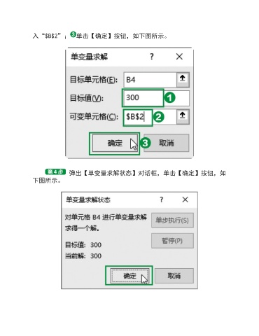 入“$B$2”; 单击【确定】按钮,如下图所示。 弹出【单变量求解状态】对话框,单击【确定】按钮,如 下图所示。