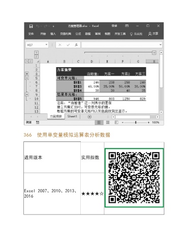 366 使用单变量模拟运算表分析数据 适用版本 实用指数 Excel 2007、2010、2013、 2016 ★★★★☆
