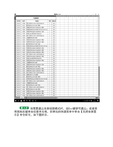 当需要退出全屏视图模式时,按Esc键便可退出;或者使 用鼠标右键单击任意单元格,在弹出的快捷菜单中单击【关闭全屏显 示】命令即可,如下图所示。