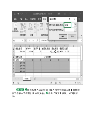 将光标插入点定位到【输入引用列的单元格】参数框, 在工作表中选择要引用的单元格; 单击【确定】按钮,如下图所 示。