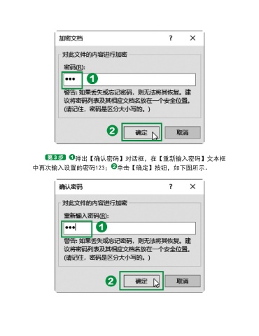 弹出【确认密码】对话框,在【重新输入密码】文本框 中再次输入设置的密码123; 单击【确定】按钮,如下图所示。