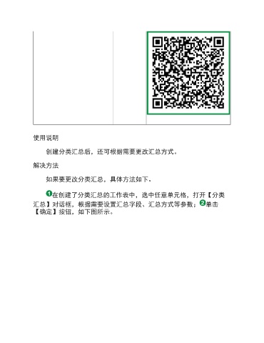 使用说明 创建分类汇总后,还可根据需要更改汇总方式。 解决方法 如果要更改分类汇总,具体方法如下。 在创建了分类汇总的工作表中,选中任意单元格,打开【分类 汇总】对话框,根据需要设置汇总字段、汇总方式等参数; 单击 【确定】按钮,如下图所示。