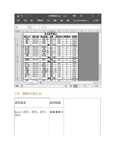 378 删除分类汇总 适用版本 实用指数 Excel 2007、2010、2013、 ★★★★☆ 2016