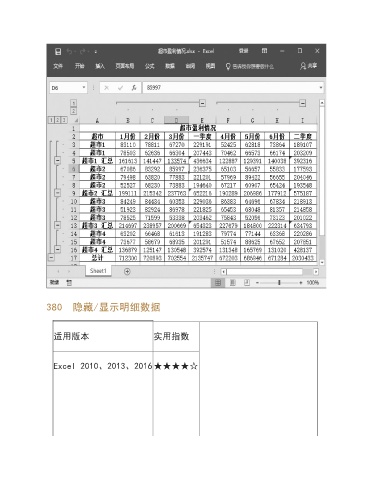 380 隐藏/显示明细数据 适用版本 实用指数 Excel 2010、2013、2016★★★★☆