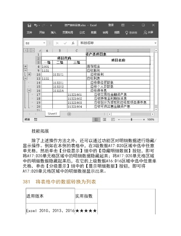 中的明细数据隐藏起来后,在它的上级数据A16:D16区域中选中任意单