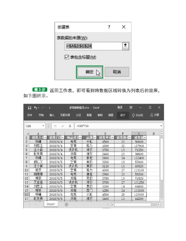 返回工作表,即可看到将数据区域转换为列表后的效果, 如下图所示。