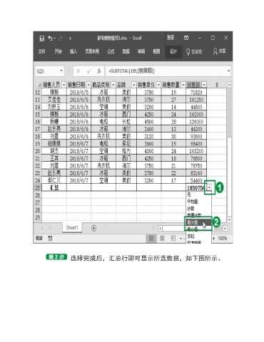 选择完成后,汇总行即可显示所选数据,如下图所示。