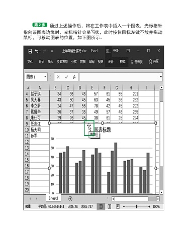 通过上述操作后,将在工作表中插入一个图表,光标指针 指向该图表边缘时,光标指针会呈 状,此时按住鼠标左键不放并拖动 鼠标,可移动图表的位置,如下图所示。