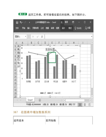 返回工作表,即可查看设置后的效果,如下图所示。 387 在图表中增加数据系列 适用版本 实用指数