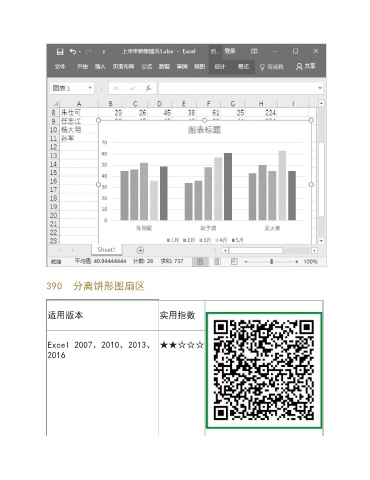 390 分离饼形图扇区 适用版本 实用指数 Excel 2007、2010、2013、 ★★☆☆☆ 2016