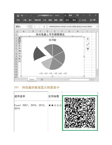 391 将隐藏的数据显示到图表中 适用版本 实用指数 Excel 2007、2010、2013、 ★★☆☆☆ 2016