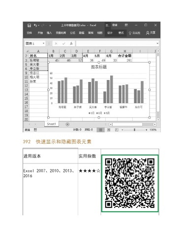 392 快速显示和隐藏图表元素 适用版本 实用指数 Excel 2007、2010、2013、 ★★★★☆ 2016