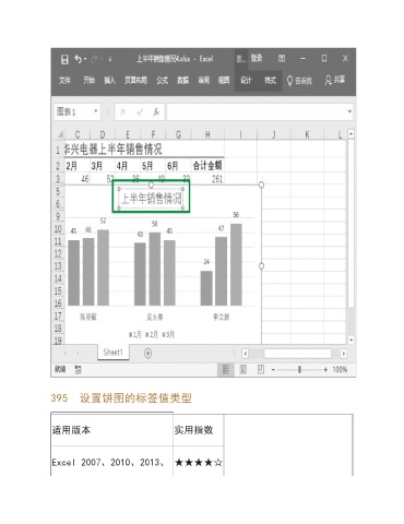395 设置饼图的标签值类型 适用版本 实用指数 Excel 2007、2010、2013、 ★★★★☆