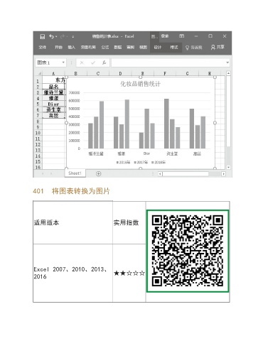401 将图表转换为图片 适用版本 实用指数 Excel 2007、2010、2013、 2016 ★★☆☆☆