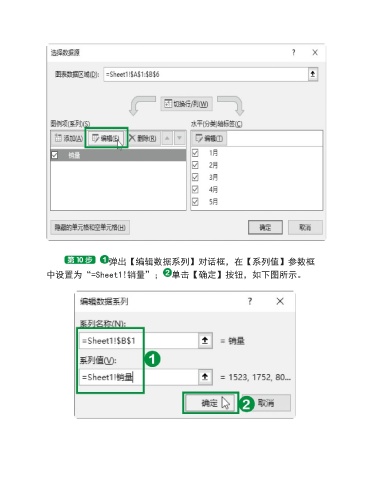 弹出【编辑数据系列】对话框,在【系列值】参数框 中设置为“=Sheet1!销量”; 单击【确定】按钮,如下图所示。